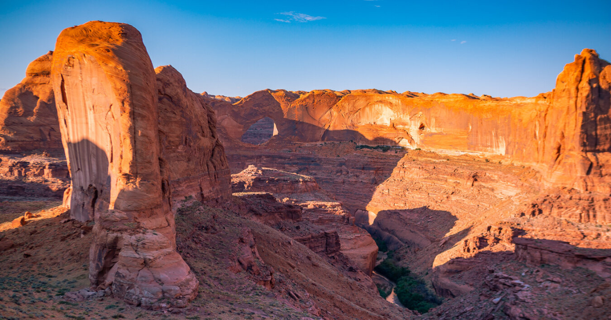 And now, my friends, you are in the spectacular canyon of Coyote Gulch. The from here is quite stunning, with a large monolith of rock, goosenecks in the canyon, and a the iconic Steven's Arch. It's one of my favorite areas in Utah.