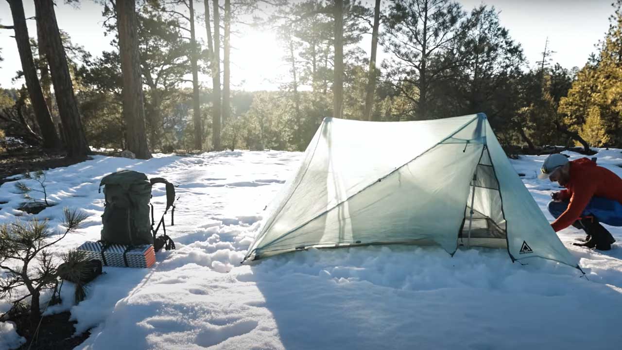 Well, that may have changed after my experience with the Durston X-Mid Pro 1 tent. I had to lumber through some snow, and the evening temperature got down to 12 degrees Fahrenheit. I definitely got a chance to feel out the weight and capabilities of this highly-sought-after, currently sold out tent.