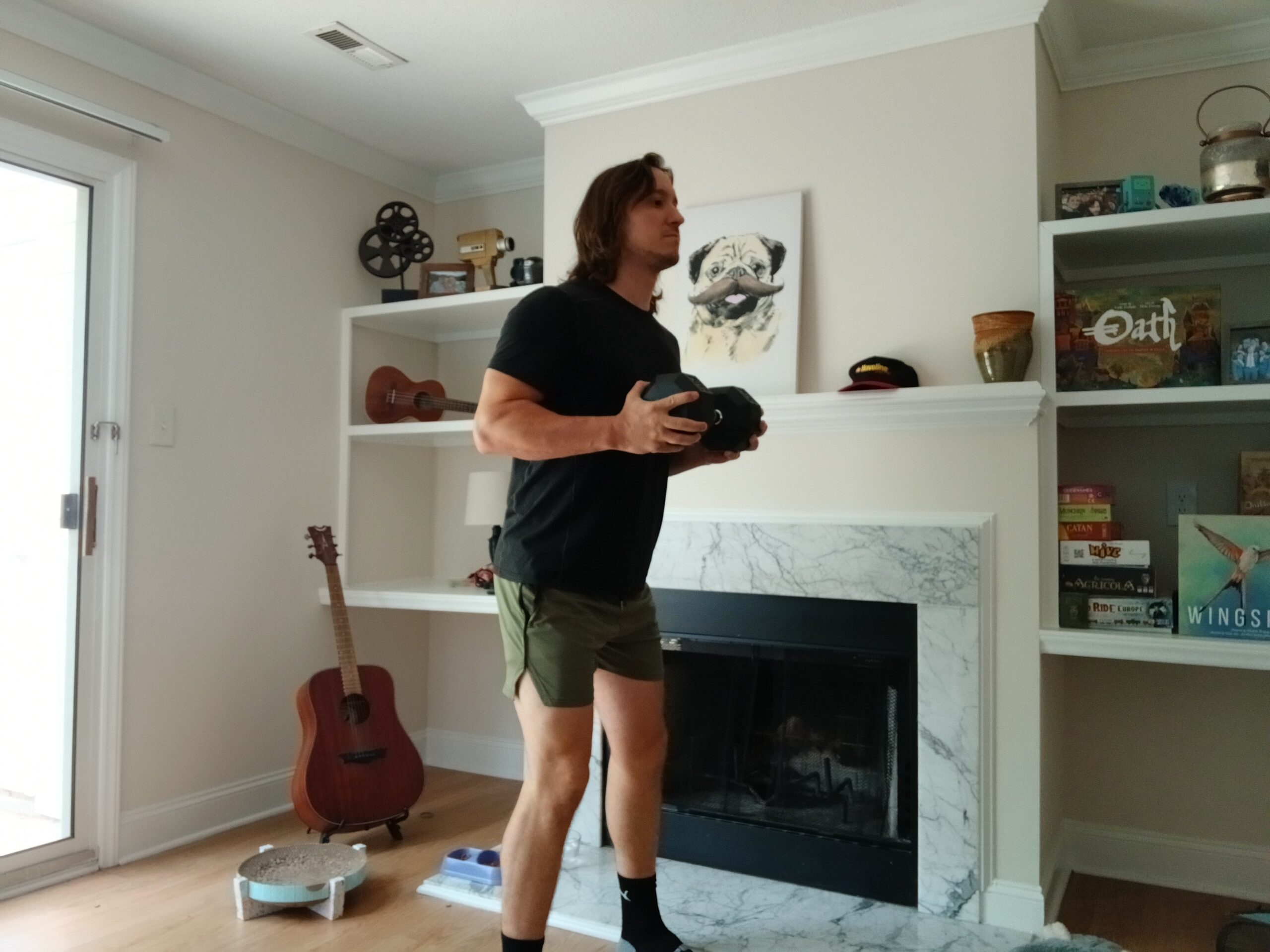 - How to Do It: Hold a weight (or a weighted backpack) if front of you as though it's a medieval goblet. keep your back straight, and your chest out. Slowly lower your body as if sitting into a chair. Feel a big stretch at the bottom, then come up slowly. This works your legs and strengthens your back muscles.